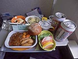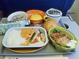 | 成田発台北行ANK2103便。ANKとエバー航空の共同運行便にANAが機材を提供しているからややこしい。オマケに機体には「Air Japan」とまでかかれているからなおさらだ。 | 成田空港上空 | 行きの2103便での機内食。メインディッシュは肉と魚からチョイスできる。肉を選んだがちょっとしょっぱかった。 | 帰りの2104便での機内食。今度は魚を選んだ。しかし、コメはパサパサしてるし、いろんな食材は硬いしで、なんにも旨くなかった。タダメシは喜んで喰う俺もだいぶ残した。それにしてもいろいろと揃えすぎである。伸びきったそばなんか出さなきゃいいのに。 | 台湾に着陸直前。高速道路を造ってるのかな(あとで気付いたが新幹線らしい。2007/01/05開業。)。空港上空や空港内は撮影禁止というアナウンスが流れたが、空港の上空じゃなきゃいいでしょ。 | 帰りの便の離陸直後。空港も写っているが、細かいとこなんて分かんないよね。 |