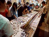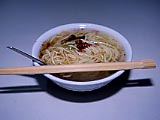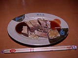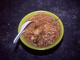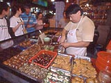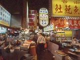 | 食堂街 | ちょっと一息。 | 魚丸湯麺。40圓。味は「ばよ~ん」としていた。「魚丸」は固くてイマイチだった。 | ゲテモノ屋 | ←で買った鶏の脚。なんにも旨くなかった。もしかしたら、このまま喰うのではないかもしれない。この他、卵やら訳の分かんないものやらと合わせて30圓だったと思う。 | |