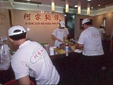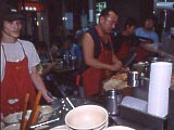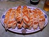 | 西門地区で人気の麺屋。席がないので、みんな立ってズルズルとやっている。 | 通りに面した厨房でどんどん丼に盛られていく。撮影許可済。 | 小。35圓。この他は大(50圓)のみ。伸びていないひやむぎに、かつをベースのとろみの付いたスープがかかり、もつ煮が少し入っているような感じ。湯気が出ていないからと甘く見るとやけどをする。せめて箸がほしいな~。レンゲで麺は喰いづらいゾ。 | 麺屋のほぼ隣にある中華屋。ここの餃子も旨いらしいので入ってみた。 | べらぼーな量が出てきた。皿に置いた5圓玉(50円玉ぐらいの大きさ。)と比べてみてね。5本喰ったところでギブアップして持ち帰りにした(袋は持参。)。ニンニクは使っていないようで、豚肉とニラだけで作っているように思えた。皮はしなっこくて俺好み。日本のようにちゃんと包んでいなくて、くるんであるだけなので、縦にして喰うと、中身がポトンと出てくる。旨かったが、もうちょっとカリッと焼いてくれるとなおよかったな。これでたった120圓。 | 90圓のビールも呑んで、ハラいっぱい。 |