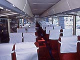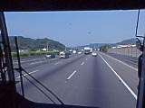 国光号の車内。左奥がトイレ(ほとんど分かんないけど。)。 | 空港から台北市内までのフリーウェイ。片側3~4車線ぐらいの素晴らしい道路。このバスの運転手は割り込みの時などにお礼の意味のハザードを使っていた。 | 松山空港と中正国際空港を結ぶ国光号。行きのバスよりは新しかったが2軸車で、トイレはなかった。ガイドなどでは国光号の他に「中興」号もあるように書いてあるものもあるが、違いがよく分からなかった。高速を途中で下りて少し時間がかかるタイプを中興号と呼ぶなら、これがそうなるのか? | エバー航空系の長航通運のエアポートバス。車は新しくてきれいで、何と片側1人がけ! 次はこっちに乗ってみたい。空港と市内を結ぶバスは全部で4社を確認した。 |