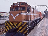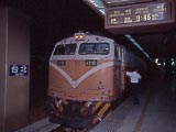 | 臺灣鐵路管理局(=台湾国鉄=台鉄)が誇る特急「自強」号。台湾読みで「ツィ シィァン」。12~14両の長い編成で、前後の2両のみが電動車のようだった。韓国のヒュンダイ製。軌間はJRと同じ狭軌だし、それに左側通行だから、日本人にとっては何の違和感もない。 | ディーゼルタイプのの自強号。やはり12両編成。こちらは日立製。 | 自強号よりちょっと格が落ちるが、一応「特急」の莒光号。台湾読みで「チュィ クヮン」。日本語読みだと「きょこう」となるようだ。この「きょ」の字は、草冠に「呂」と書く。このページを表示させているPCにインストールされているフォントによっては表示されないかもしれない。 ディーゼル機関車(写真)か電気機関車が牽く客車特急。やはりこれも12両編成。日本は短い特急ばかりになってしまったが、こういう列車を見ると日本の黄金時代を思い出すね~。 |