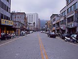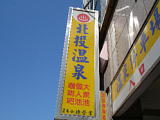 | デッキと客室との間のドアは自動だが、ボタン式。 | 俺の乗った自強号は1996年製造。 | 台北から約1時間半で温泉で有名な礁渓に着く。 | 礁渓駅 | 礁渓駅前通り。駅前すぐの商店で片言の日本語ができるおじぃに共同浴場の場所を聞いたら、礁渓温泉の説明や台湾全体の温泉紹介を始めてくれた。それはいいから、共同浴場を教えてよ。 | 何とか場所を聞き出して、そこへ向かう。これはその途中の健康ランドのようなところ。24h営業。結構混んでいるようだった。 |