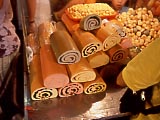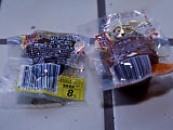 | サンルートの近くの麺屋。 | 値段は20圓か40圓。分かりやすい。主人は日本語が少しできる。 | 厨房。この店も通り側にある。この方が道行く人にアピールしやすいのだろうか? 日本ではほとんど見かけないスタイルである。撮影許可済。 | 切仔麺。20圓。かなりあっさりしているので、濃い系のおかずでも喰いながらどうぞ。 | スープなしの雲呑。焦げたネギの香りもよく、ものすごく旨い。これは大ヒットだった。台湾ビールと一緒に是非! | 一部のイレブン屋で売っている、ウズラとニワトリのくん玉。どちらも8圓。香辛料がアジア的だがどちらも旨く、何店かで買い占めてきて、みんなへのお土産にした。帰国時に成田の税関で「こりゃ、なんですか?」とびっくりされた。 |