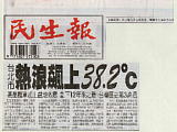 | 台北周辺の地下鉄。「MRT」で通じる。 | 乗車券。テレカと同寸。樹脂製。最低運賃は20圓。いくつかのデザインがある。この路線図のが欲しくて出てくるまで何枚か買った。余分になったのは他のお客さんに半額の10元で売ってあげた。 | MRTとバスの乗り継ぎカード(のようなもの?)の宣伝看板。なんでおねーちゃんがこんなえっちなかっこをしてるの? | 一般のチケットは、自動改札だが、1日乗車券はなぜか紙ペラなので、駅員さんのいる事務所の横のこの改札を通る。1日乗車券こそ自動改札をフリーにすればいいのに。 | 俺が台北に着いた日は、なんと歴代3位の暑さだったらしい。「らしい」というのは、昼過ぎに炎天下を歩きはしたが、それほど暑いとは感じなかったのである。灼熱のやいまの方がよっぽど「痛い」。 | 藤原紀香(←おおっ、一発変換しやがった。猪口才な。)が載っていた新聞。こんなおみ足で蹴られてみたいわ。 |
