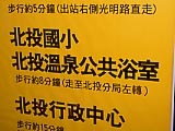 | MRT北投站。温泉に入りに行こう! | ちゃんと案内も出ている。なお、MRTの案内板は日本で見慣れた黄色いプレートなのですぐ馴染める。 | 北投站になぜか置いてあった体重計。そういえば、和歌山城の天守閣にもあったな~(昭和48年頃の話。)。 | 東側の出口を出たところの通り。すぐ左にファミリーマートがある。 | 台湾では、どこでもすぐバイク置き場になってしまうので、コンビニの入口にこういう柵がある。 | ドラえもんとゆらゆら。 |