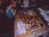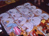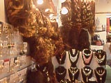 | カツラとネックレス屋。 | ケータイの着せ替え屋。この商売は日本にもあるよね。 | 口のところからナニが出せるようになっている。女の子の顔の方がインパクトがあるのにな~。 | 子供用のプリントパンティ屋。 | スピード取締のレーダー屋。 | 通りから食堂街へ通じる屋根付きの路地。 |