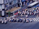 | 台湾のタクシー。みんな同じカラーなので、すぐ分かる。初乗りは1650mで70圓。中には悪質なのもいるらしいが、俺が乗ったのはみんなきちんとしてた。自動ドアではない。また、降りるときは後ろから来るバイクに思いっきり気を付ける。 | 「しゃぶしゃぶ」と書きたかったんだと思う…。 | すぐ巨乳になれるのかな? | 台湾はものすごいバイク天国。排気ガスがすごく、それ対策用のマスクもある。かわいいおねーちゃんでも平気でマスクをしている。なんか日本のゾクのようで恐いが、ゾクっとさせられるものもある。夜市にもいろんなデザインのマスクを売っている屋台があったっけ。 | 日本でのデザインとは、似て非なる缶たち。 | 信号の色が日本と赤青逆。黄色は逆にしようがない。 |