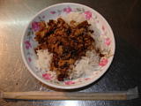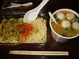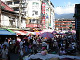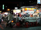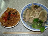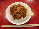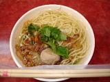 | 北投駅から温泉へ行く途中の雑貨屋兼メシ屋。 | ←の店の雲呑麺。40圓。 | サンルート台北近くの双城街の屋台街。 | 涼麺と味噌スープ。これで50圓。 | 坦仔麺。 | 台湾の定番、魯肉飯。20圓。 |
