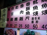 | 台湾の屋台には前面にこういうメニューがハッキリと掲げられている。 | これも魯肉飯。茶碗がかわいい。25圓。 | 双城街のアヒル料理屋。 | ←の店のアヒルスープ。70圓と、屋台料理にしてはちと高いが、とても旨い。 | 北投市場 | ←で買ったロースト鴨。ジューシーでとても旨く、ビールに合うんだね。塩コショーも付いているのが泣かせる。50圓。 |