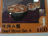 | この信号は赤になるまでの残り時間が表示され、最初の30秒は「歩き」ます。その様子を5秒の動画(161KB)でどうぞ。 | 残りが30秒になると「走り」ながら点滅します。この様子も5秒の動画(170KB)でどうぞ。 | 吉野家の基本セットと思われる。100圓はちょっと高くないか? | |||