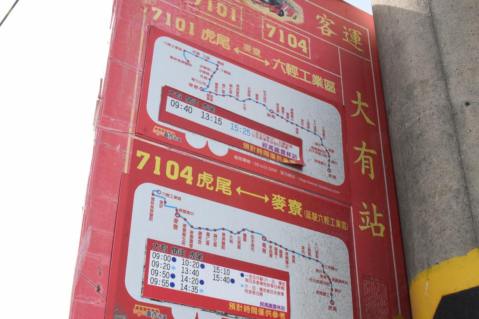 確実に乗れるのは、高鐵雲林車站か、虎尾のバス停です。