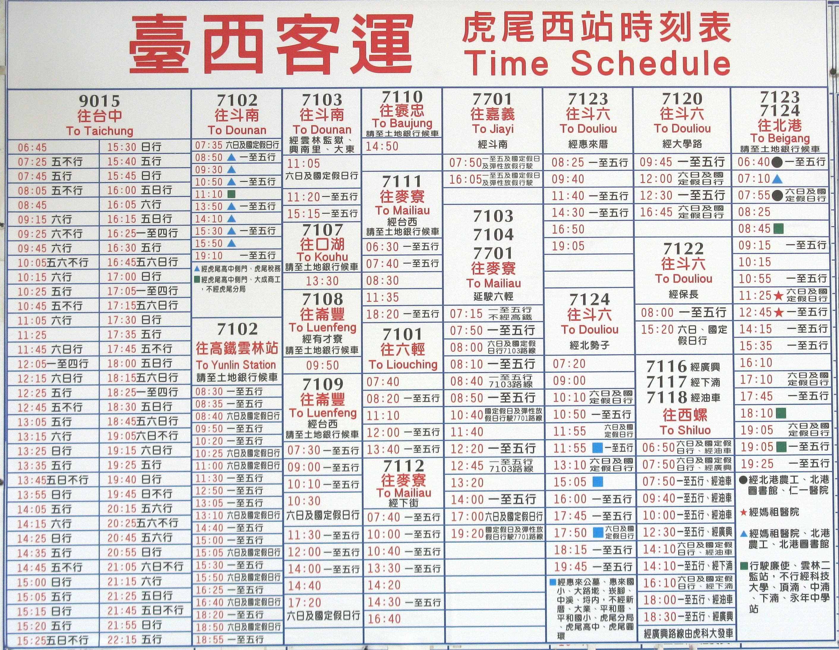 ③虎尾や崙背のバスロケーションシステムのバス停に貼ってある時刻表