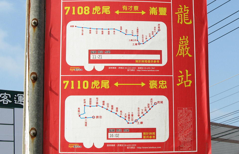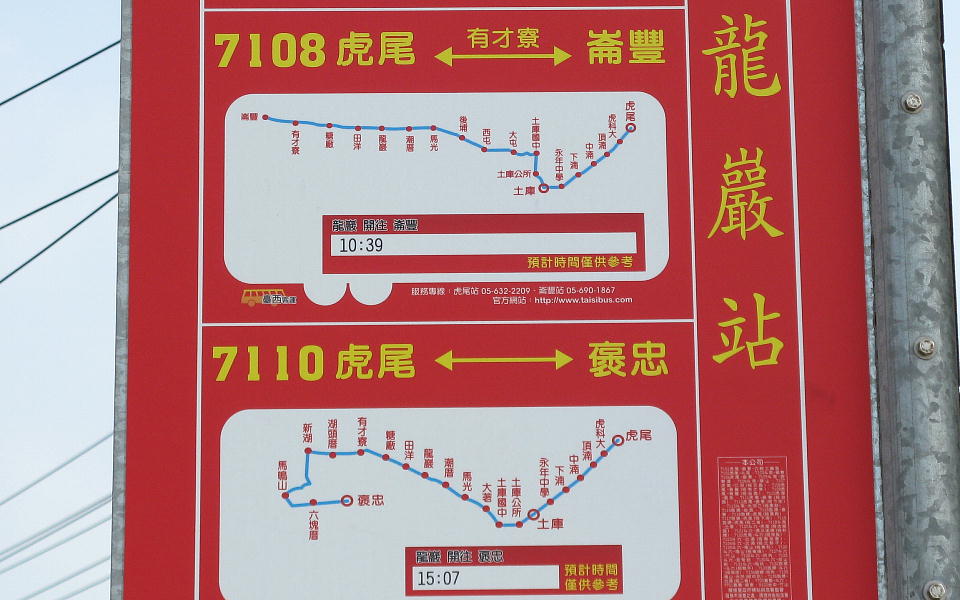 ・龍巖1602~虎尾(時刻不明)…7110系統