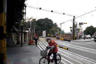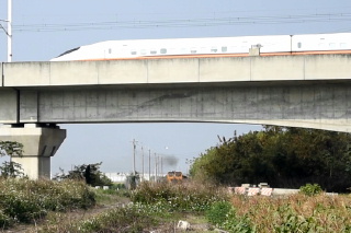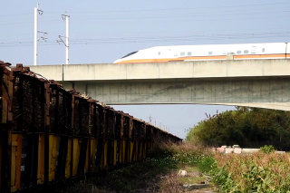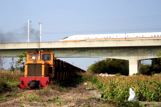 サトウキビ列車を運行しているので 踏切道を通るときは 「停まって」「看て」「聴け」ってさ。 製糖工場の地点から、 高鉄(新幹線)と立体交差する地点 まで歩いてみる。 |