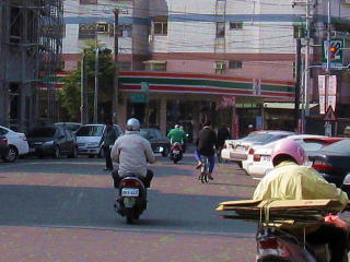 高鉄との交差地点での撮影を終わり、 機材を片付けていたら、 地元と思われる原チャリの兄ちゃんが 「虎尾の町に戻るのか」みたいなことを 言ってきた(と思う)ので、 歩いて戻る旨を身振りで伝えたら、 大変嬉しいことに虎尾の町 まで乗せてくれた。 ただ、ノーヘルの2人乗りが台湾では いいのかどうか分からない上、 撮影機材を両手に抱えたまま足だけで バイクを挟んでしがみついていたので、 いろんな面でヒヤヒヤした。 でも謝謝你! すぐに街なかのイレブン屋があるところまで 戻れ、お陰で行程にだいぶ余裕ができた。 いや~、機動力は強いね~。 ※写真に写っているバイクは 乗せてくれた人ではありません。 |