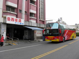 バスは虎尾始発ではないので、 約20分遅れてきたが、都合よく乗れ、 約30分で「斗六總站」に着いた。 斗六總站は、台鉄の斗六車站の北口を 背にして左へ進み最初の角を右折して すぐのところにある。 |