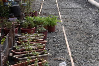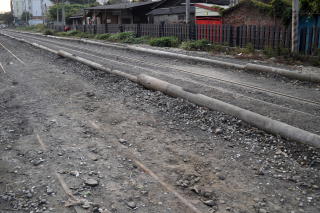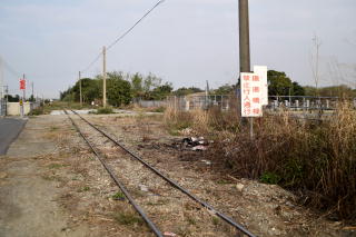 | 真ん中の電信柱を境にして 向こう側が現役(?)の線路で、 手前はどう見ても使っていない線路。 つまり昔は複線だった? |