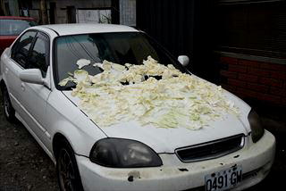 軌道脇に停めてあった車で キャベツを干していた。 干しキャベツってどんな料理に 使うんだろ? |