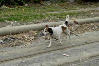 | 軌道脇をわんこがスキップしていた。 と思ったら、このわんこは 右の後ろ脚が不自由だった。 |