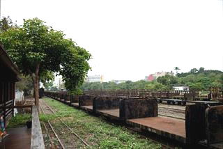 | 「虎尾站」の裏から、 虎尾糖廠のヤードが見える。 |