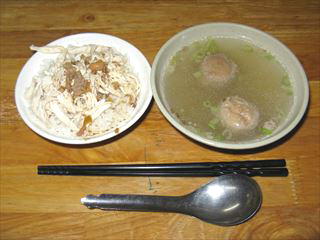 | ハラが減ったので、また 「虎尾魷魚羹」に来た。 鷄肉飯25圓と貢丸湯20圓。 これらも旨いのだ。 |