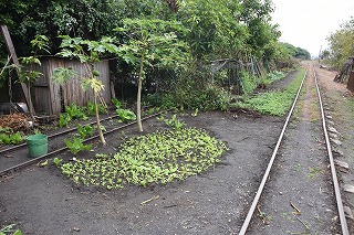 | 高鐵の高架の手前に 1号装車地跡がある。 まだ何にも知らない頃に 最初に撮影したのがここだったが、 装車地跡だったとは。 残念なことに前回はあった線路際の パパイヤの木がなくなっていた。 |