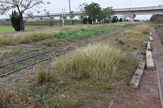 北溪厝車站跡。 右上に待合室(?)の建物跡が 写っている。 |