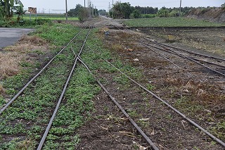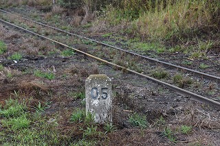 | 2便と4便の撮影場所から 9号装車地まで歩いて約25分だった。 さっき撮影した地点から 9号装車地までの道のない区間に 6・7号装車地跡があるという 情報だったが、分からなかった。 この写真は7号装車地跡らしい場所 から9号方面を撮影。 情報によれば写真に写っている 平交道のすぐ先(西)が8号装車地跡 のようだったが、だとすると 8号と9号はすぐ近くだったことになる。 実際はどうだったんだろうね。 |