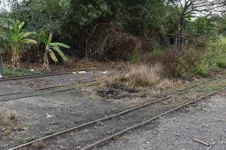 「雲29」号との平交道のすぐ東にある 改良場車站跡。 待合室(?)の建物跡もある。 建物内で腰掛けることもできるので、 一休みできる。汚いけど。 この先「雲97」号との平交道までの間に 3・4・5号装車地跡があるとの 情報だったが、よく分からなかった。 |