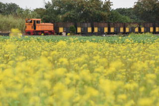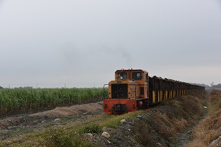 | 台湾での1月は、菜の花が盛り。 こういう写真を撮りたかったんだけど、 なかなかいい場所がなくて、 やっと見つけた場所で1時間近く 待機していた。 人の往来がないに等しかったのに、 8時半になっていざ1便が来るって時に、 おばちゃんが畑に作業に来た…。 しかも、ちょうどアングルに入る ところに佇んでくれちゃって…。 おばちゃんは、1両目の貨車の 黄色の板の右下に写ってます。 おばちゃんの畑だから 「どけ」とも言えないしね。 人生って、こういうもんですね。 列車は、サトウキビを積みに向かう。 |