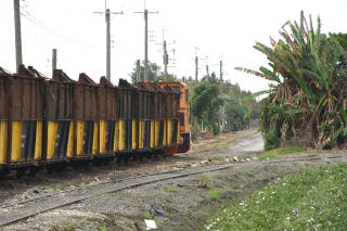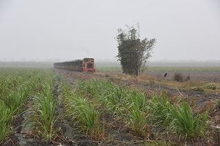 「雲97」号との平交道の西辺りから 線路と平行する道がなくなる。 ちょっと南に迂回路はあるが、 すぐには列車が来ないことが分かって いたので、線路を歩いて、 周りがサトウキビ畑になった辺りの 農道ような道との平交道で 2便と4便を待った。 ちょうど6号装車地跡のすぐ東付近。 ってところで雨が降ってきやがった。 写真は9時半前にやってきた2便。 その後、ほぼ10時ちょうどにやって来た 4便の約40秒の動画はこちら。 |