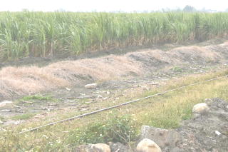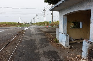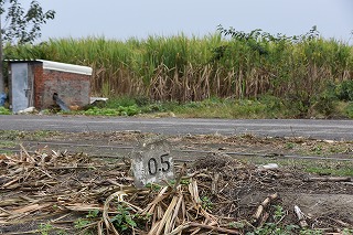 | 2号装車地跡 | ここにも標識が残っていた。 この辺でやっとサトウキビが姿を現した。 が、ここではまだほんの少しだった。 |