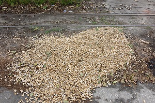 | 沿線に捨てられていた 大量の落花生の殻。 |
