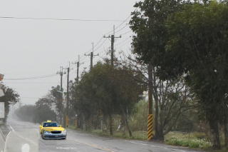 ※この写真は合成です。 でだ、ここから宿のある虎尾の町なか へ戻るまでが簡単ではないのだよ。 取材を始めた製糖工場から この場所まで9km弱もある。 こんな距離をよく歩いたもんだね。 俺は腰痛&脊柱管狭窄症なので、 腰が痛いし、足が痺れてるよ。 おまけに、撮影機材を持っているし。 行きは楽しみながら来ているので 「よいよい」だったけど、 風雨が強まっているので、同じルートを 帰るのは気分的にかなり辛い。 雨で線路敷がぬかるんで歩きにくいし。 仮に歩いたとして約2時間半はかかるね。 雨じゃなきゃのんびり歩いて帰るけど…。 そして、この場所はバスなどの 交通機関は全くない。 しかし、ここから北へ約5kmの崙背 まで行くとバス通りがあるので、 雨の中頑張って歩くことにした。 1時間以上は歩くことになるし、 崙背でどれぐらいバスを待つことに なるのか分からないけど、 虎尾まで線路伝いに歩くよりはマシだ。 これまでの「取材」の観点はないので、 楽しみはなく、延々とぼとぼと歩くのだ。 歩かないと帰れない。 気合いを入れて虎尾の外れの田舎道を 傘をさして歩き出した。 すると! 30分近く歩いたところで、 前方から黄色いクルマがやってきた。 すぐにタクシーだと分かった。 しかも赤いLEDで鮮やかに「空車」 の文字がある! この空車、逃してなるものか! と、目一杯手を振って無事につかまえた。 で、この写真はそのイメージね(笑)。 原版は別な普通のクルマが写ってます。 カメラ機材はしまっていたし、 あまりにも突然の出来事だったんで、 当然タクシーの写真を撮ることは できなかった。 交通量がかなり少ないこんな田舎道を 都合よく空車のタクシーが通るなんて、 普通、絶対に考えられないもんね。 想定すらしてなかったよ。 正に救いの神だったよ。嬉しいのなんの。 そして信じられなかったよ。 これは奇跡ですよ。 |