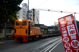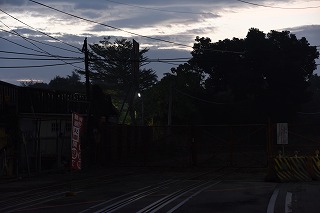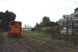 | 翌日は朝から雨が降っていたので、 サトウキビ列車の取材は潔くあきらめて 台鉄の集集線に硬券集めに行った。 その更に翌日、まだ暗いうちに起きて 空を見上げたら、月が見え隠れしてるし、 星も見えた! やったね、とイソイソと準備をして、 サトウキビ列車の前に製糖工場内を 入れ替えする貨物列車を撮りに、 製糖工場の入口の平交道に来たが、 まだ開門していなかった…。 |