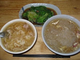 10時半という中途半端な時刻 だったが、ハラが減ったので、 また「虎尾魷魚羹」でメシにした。 注文品を紙に書き込んでいたら、 店員さんが見て「おおぅ」と言った。 俺も「ちょっと多いかな~」と 思いつつ書き込んでいたのだが、 結局そのまま注文した。 そしたら、なんとまーいい量が出てきた。 でも、汗だくになりながら、 何とか喰ったよ。 旨いから喰えるんだよね。 餡かけのコメと冬粉と青菜。 これで130圓。 |