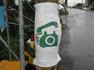 「松本超市」のバス停の隣の 電信柱に巻かれていた。 でっかい電話マークがおもしろくて…。 |