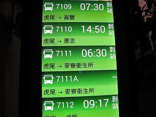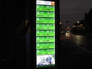 | 「バスタ枋寮」のバスロケ。 表示一覧の下から2番目の07:15発の 7104A系統があることをまず確認した。 06:30は、空はまだ暗いよ。 |