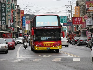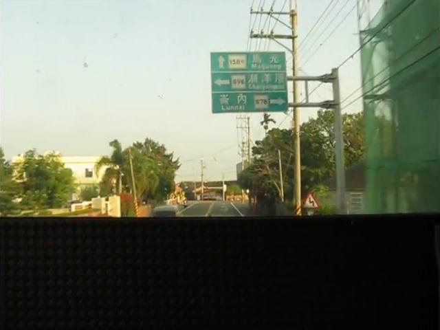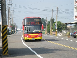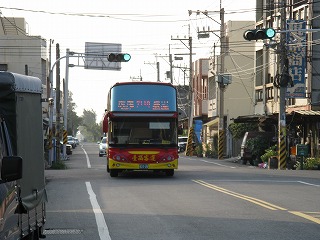 "2階だけバス"の最前列に座った。 潮厝に到着(実際は通過。)して、 次の馬光のアナウンスの様子の約25秒の動画はこちら。 ちなみに潮厝も馬光も、 ①標準語(北京語:台湾華語)、②台湾語、③客家語 の順番で言ってるんだと思う(違っていたらごめんなさい。)。 |
