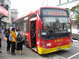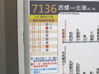 定刻を8分過ぎて ちょっと不安になりかけた頃に やってきた、乗り継ぎの7136系統。 崙背発08:04(実際08:12)┓ 王厝寮08:10(実際08:19)┛ |