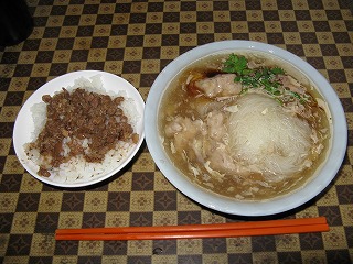 | ひとまず宿に戻ることにしたが、 ハラが減ったので、 客が多い小吃屋に飛び込みで寄ってみる。 「美貞肉羹」という店。 |