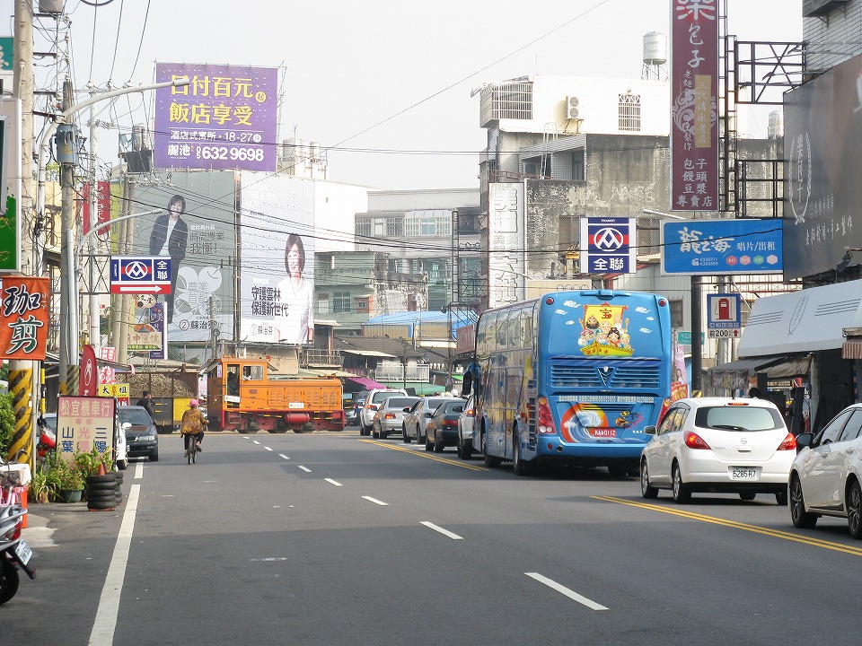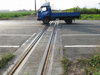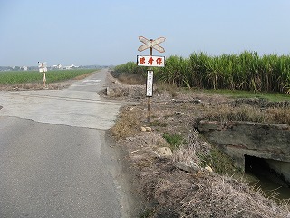 王厝寮站からバスで1分もかからず、 サトウキビ列車の平交道を通る。 |