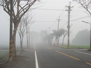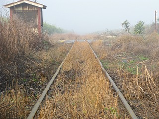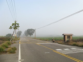 | 西にまっすぐ延びる線路を霧の中歩いて、 雲103との平交道まできた。 ここに小屋があるがやはり鍵がかかっている。 ちょっと一休みする。 9號~雲103の平交道 23分 |