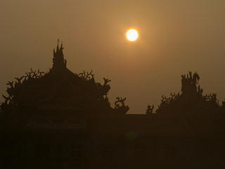 寺院のシルエット。 | 無人の9號に着いた。 馬光站~馬公厝線突き当たり 30分 馬公厝線突き当たり~9號 7分 |