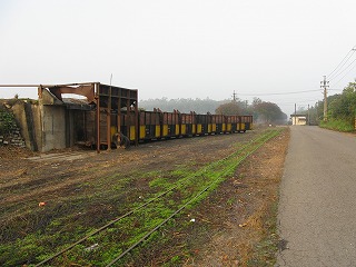 | ひとまずある程度の両数の空車に積み込みを終えたら、 後ろからトラクターで押して突放する! 約25秒の動画はこちら。 突放された貨車が動いているだけの動画だけど、 動いている貨車を、歩きながら動画撮影できるんだから大らかなもんだ。 ニッポンなら絶対ムリだよね。 できればトラクター側にいて、突放するシーンを撮影したかったな~。 |