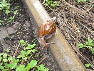 9號から10號に向けて 線路伝いに歩き始める。 でんでん虫(アフリカマイマイ?)が 異様に多く線路の周りで うにょうにょしている。 つい触っておちょくりたくなるが、 寄生虫がいるのでむやみに触ってはいけない。 |