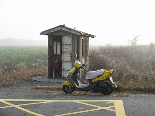 と、ホントにドラマにあるようなタイミングで、 女の子のバイクがキキ~っと到着した。 鉄おとめか? 今日は走んないよ、と思ったが、 作業着を着ているし、 なんと、小屋の鍵を開けたぞ~! 台糖のスタッフだ! 慌てて、今日走るのか聞いたら 「有」(ある=走る)とのことだった。 こら~、5日まで休みなんじゃないのかい! しまった~、ちゃんとした撮影機材は 宿に置いたまんまだよ~(涙)。 |