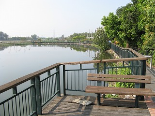 | 縣道158甲に出たら池があった。 暑くなってきたのでちょっと休憩したいが、 潮厝站までの所要時間を 計測中なので、バス停に向かう。 |