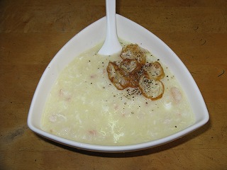 狭い店内で喰ってるのは俺だけだが、 お昼時ということもあってか、 注文の電話がひっきりなしにかかってくるし、 原チャリで店に買いに来る人も たくさんいた。 外は日が照って暑いってのに、 猫舌の俺が熱いお粥を 恐る恐る口に運んでいる(笑)。 |