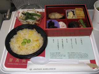 JL097便の機内食。 恵比寿(広尾)の「賛否両論」の監修。 なかなか旨かったよ。 |